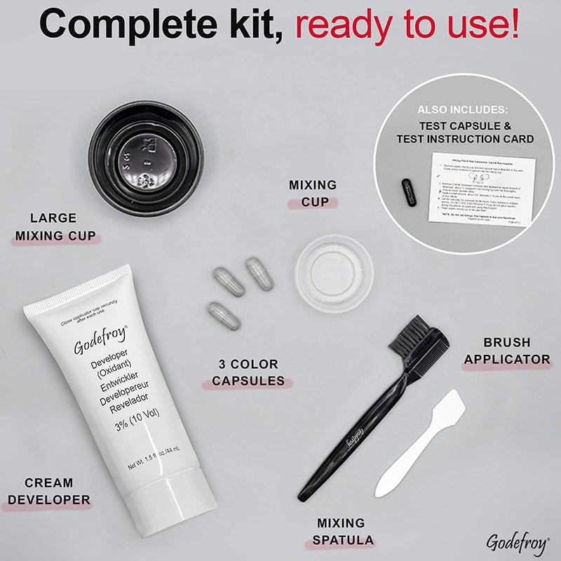 Ideal for colouring men’s facial hair, especially small areas like short beards, moustaches, goatees and side burns. Pre-measured colour capsules give you the versatility to use the exact amount of colour with no waste. The unique colour capsule is formulated with microscopic colour pigments that deeply penetrate coarse facial hair, delivering long-lasting colour for up to 6 weeks.