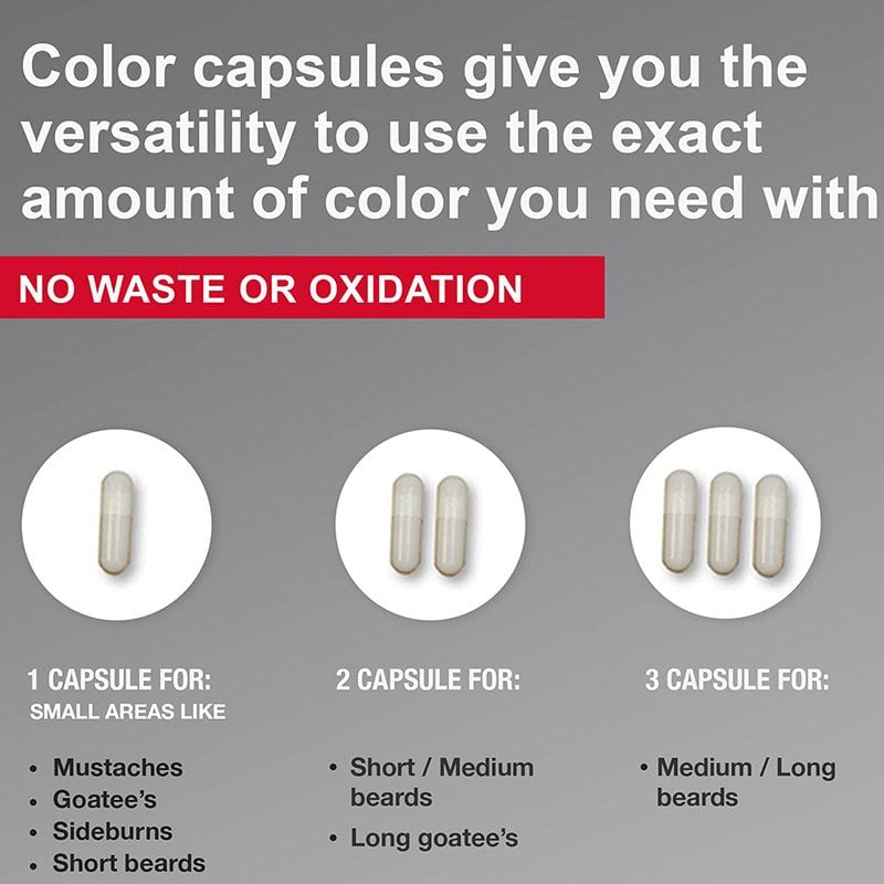 - 1 capsule: for small areas like moustaches, goatees, sideburns or short beards